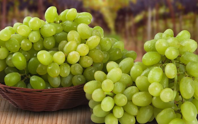 Green seedless grapes are small to medium in size and are round to slightly oval in shape, growing in tight or loose clusters depending on the variety. The skin ranges from yellow-green to bright green and is typically crisp, firm, and smooth. The flesh is pale green, semi-translucent, and seedless, though some seedless varieties may have a few underdeveloped seeds that are undetectable when consumed. Green seedless grapes are mild and sweet with a slightly tart flavor.