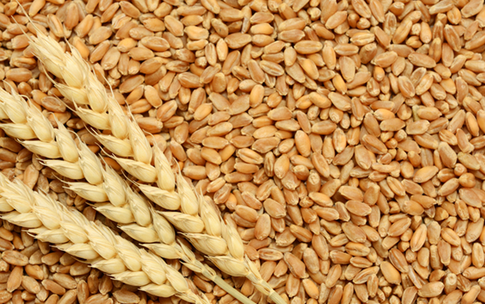 Wheat is a cereal grain. People eat it most often in the form of bread. It is a kind of grass whose fruit is a "head of wheat" with edible seeds. World trade in wheat is greater than for all other crops combined. Globally, wheat is the leading source of vegetable protein in human food. It has a higher protein content than other major cereals such as maize (corn) or rice. In terms of total production, it is second to rice as the main human food crop and ahead of maize (maize is used more for animal feeds)